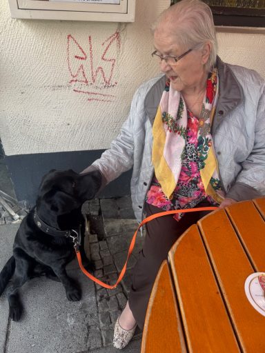 Sie ist sehr vorsichtig und galant, geschult auf das Begleiten am Rollator und Rollstuhl - eine einfühlsame Begleiterin auf vier Pfoten!